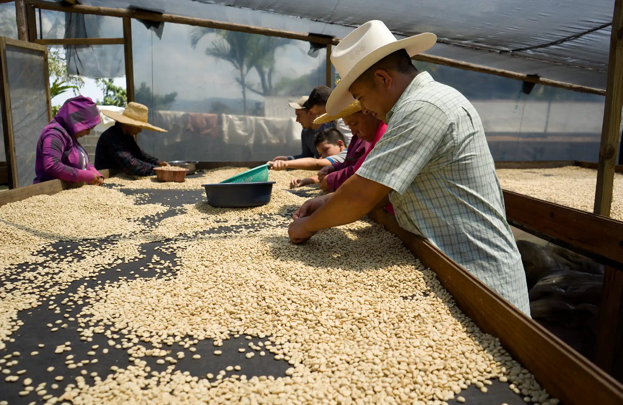 While Jobneel was making a living in the US, he was working long and hard days in construction and was struggling to make ends meet. It took a year before Jobneel decided to leave his life in the US and move back to Honduras with his wife and newborn son Johan. He was now ready to work with his father and try to establish a coffee farm on his own. Luckily he managed to buy finca Nacimiento, located right below his fathers farm Cielito Lindo. It was a small farm that was already planted with coffee but without any infrastructure. Jobneel had to build a small wooden house and managed to build a mini-wet mill where he could de-pulp his coffee with a hand-crank de-pulper before driving it to the exporter’s dry mill where the coffee would be dried on patios.